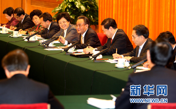 3月5日,中共中央政治局常委、全国人大常委会委员长吴邦国参加十一届全国人大五次会议安徽代表团的审议。 新华社记者 姚大伟 摄