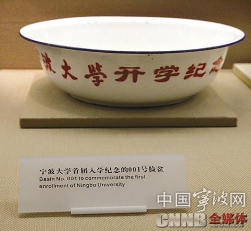 | 宁波大学首届入学纪念“001号”脸盆(胡建华摄) |