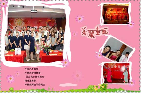 我感谢宁波银行这个团结向上的大环境,感谢每个人亲切的笑脸,是你们带给我愉悦的心态与积极乐观的精神;感谢我们丰富的企业文化建设,积极组织各项活动,中秋晚会与2012迎新晚会,“居危思进、患忧行远”主题演讲比赛、新员工入职仪式、“三情”员工演讲比赛等一系列活动的展开,让我们有了更多展现与交流的机会,活动的筹备与组织成员都是我们平时的工作伙伴,虽然来自不同的条线,来自不同的支行,但我们的心连在一起,正是因为有了这样好的团队协作,我们才能在工作之余收获更多的欢声笑语与感动,使得我们的职场生活变得更加多彩斑斓,让我对工作充满了期待与热情……
