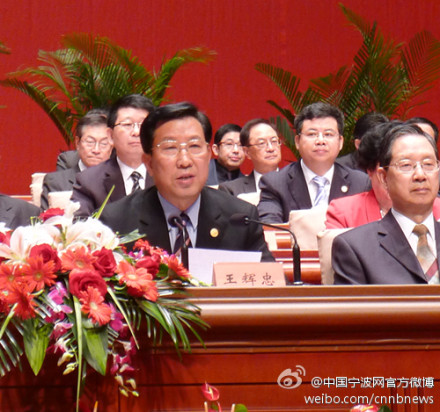 中共浙江省委常委、宁波市委书记、市人大常委会主任王辉忠致辞