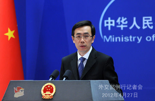2012年4月27日,外交部发言人刘为民主持例行记者会。