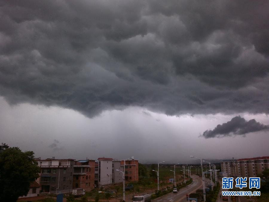 5月9日,江西兴国县城上空乌云密布。据气象部门监测显示,5月7日至9日江西先后有23个县市的93个乡镇站点出现暴雨,有5个县市的19个乡镇站点出现大暴雨。降雨对流性强,期间先后有20个县市的57个站点出现1小时30毫米以上的短时强降水天气。中央气象台5月9日18时继续发布暴雨蓝色预警:预计,9日20时至10日20时,贵州东南部、湖南南部、江西中南部、福建中部和西部、广西东北部等地有大到暴雨。新华社记者 周密 摄