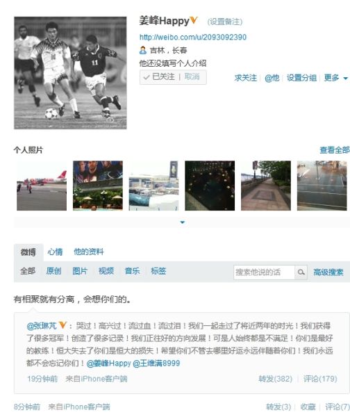 张琳芃的这条微博可以说是表明了恒大教练组的变动,对此姜峰也在微博上回应说:“有相聚就有分离,会想你们的。”而他在之前一条微博上也写到:“职业教练是很残酷的。”之后,李帅也更新了自己的微博,他写道:“命运真的有轮回,我在2009年写下的日记,竟然在今天又重演。天下没有不散的宴席,@李章洙 @王维满8999 @姜峰Happy 我们完成了在一起最后的任务,现在你们即使是离开也可以笑着骄傲的告别,期待下一个轮回能再追随你们,感谢!感恩!”