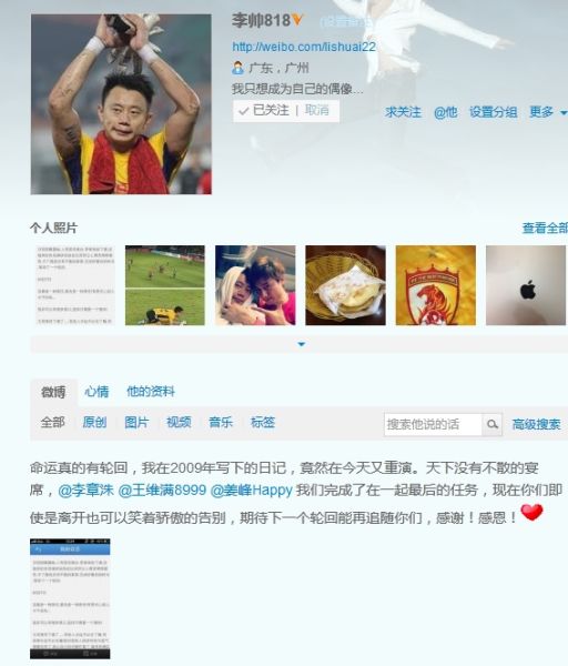 恒大将正式宣布李章洙下课 球员教练微博深情告别