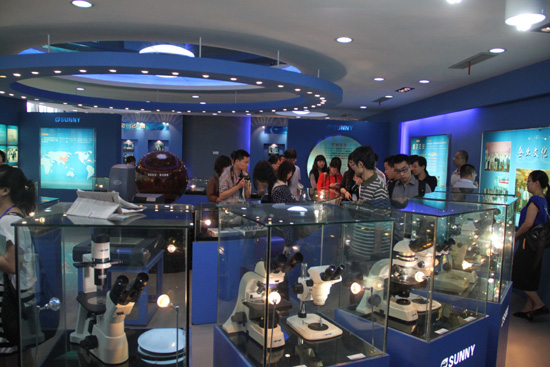 浙江在线杭州5月21日讯(记者 施宇翔)从相机镜头到手机摄像头,从显微镜到精密测量仪器,展厅内展出的一件件产品琳琅满目,让采风团成员目不暇接。