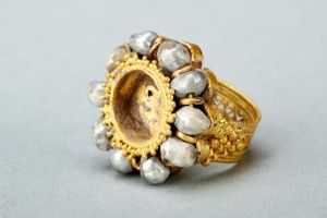 唐嵌宝镶镂空花金戒指
