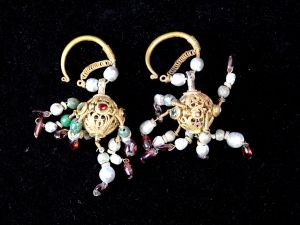 镶嵌宝石莲瓣纹金耳坠