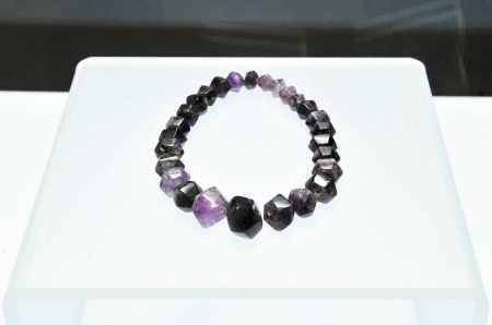 汉代多面体紫色水晶串珠、汉代鼓形缠花金球等北海汉墓出土的水晶、玛瑙、琥珀饰品、金饰,宁波的玻璃瓶,扬州的波斯陶等展品突出国外风物的输入。