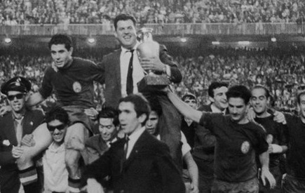 1964年6月21日,在伯纳乌球场,西班牙队要通过击败强大的苏联队来捍卫斗牛士的尊严。比赛第6分钟,8号佩雷达首开纪录,但两分钟后就被扳平,进球的是苏联队的11号加里姆赞·库赛诺夫。艰苦的比赛直到第84分钟才开出鲜花,9号马赛里诺·马丁内斯·高破门,西班牙队2比1获胜,捧得德劳内杯!