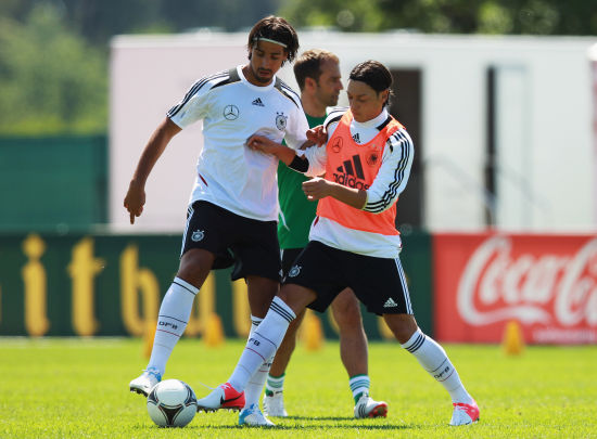 图文-德国备战欧洲杯 厄齐尔与赫迪拉抢球
