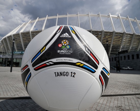 图文-2012欧洲杯比赛用球亮相 巨大足球模型现世