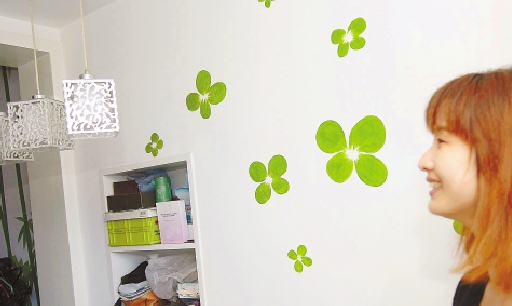 昨天,记者走进张彤家,感觉特别敞亮。客厅、餐厅、厨房都是打通的,墙上还有各种绘画:电视背景墙画的是朵蔷薇花,随意中有一丝精致;玄关处是一幅竹林图画;餐桌边是一张四叶草图……处处透着“鸟语花香”。