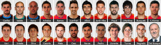 博斯克公布了西班牙征战2012欧洲杯的23人大名单