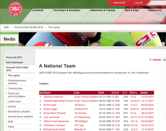 中场:2.克里斯蒂安-波尔森(埃维昂)、7.奎斯特(斯图加特)、8.克里斯蒂安-埃里克森(阿贾克斯(微博 数据) )、14.舒尼(奈梅亨)、15.西尔伯鲍尔(瑞士青年人)、19.雅各布-波尔森(中日德兰)、20.卡伦贝尔(埃维昂)、21.齐姆林(布鲁日)