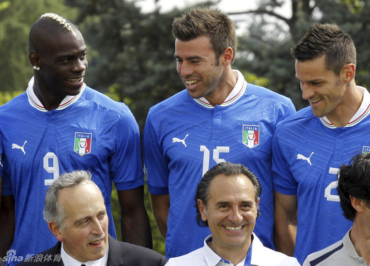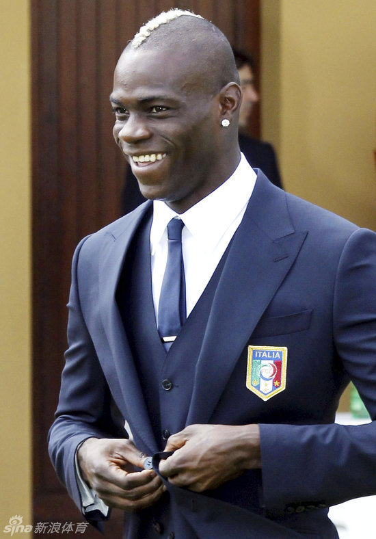 2012年5月30日,意大利队拍摄了欧洲杯全家福,巴洛特利盛装出席。