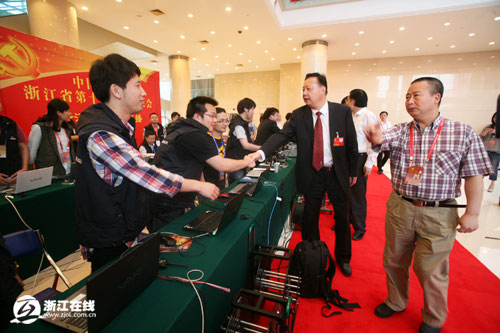浙江在线杭州6月6日讯(记者 童俊 王坚颖) 6月6日上午9时,中国共产党浙江省第十三次代表大会将在杭州隆重开幕。开幕前,浙江省委常委、宣传部长茅临生来到浙江在线党代会直播台前,亲切看望并慰问了本网工作人员。