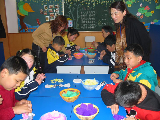 在“生涯教育”的背景下,学校增添了个别化训练教室、特殊教育需要服务热线接待室等功能教室,还利用教育协作理事会这个平台,把所在社区和学校周边的超市、农贸市场、宾馆、休闲区、银行、医院、餐馆等资源都变成了教学课堂,形成了“学校课堂与社区课堂相结合”的教学模式,形成了“知能整合,知行合一”的达敏教学理论。学生的生活自理、社区适应、社区使用和社区安全能力提高很快。如今,达敏学校的学生能烤出香喷喷、油亮亮的面包,能做出色香味俱全的菜和汤,还能向前来观摩的特教专家、老师介绍宁波特产,展示自己的技能。学生的工艺作品多次获得国家级奖。文艺节目《飞翔的梦》获得浙江省一等奖,并在社区多次演出。胡燕同学在2008年东亚地区桌球锦标赛中荣获女子单打第一名,2010年在全国特奥运动会中获得女子单打、双打第一名的优异成绩。更令人欣慰的是,学校首届职高班毕业生被宁波市金田铜业公司全部聘用,此后的职高毕业生也是100%就业。孩子们的成功和自食其力让家长们流下了欣慰和感激的泪水,这验证了刘佳芬校长信奉的教育理念的正确,教学改革的成功。