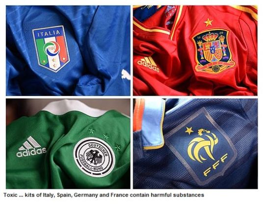 欧洲消费者组织(BEUC)的声明说:“东道主波兰的球衣应该从各处的商店中强行下架并禁止使用,其中为了防汗而含有的有机锡化合物已经超出了法定标准,该物质对于人体的神经系统有毒害的作用。”BEUC的声明还称,源自工业废水的“壬基酚”,在西班牙和意大利的球衣中被发现,而葡萄牙和荷兰球衣中发现了“镍”。
