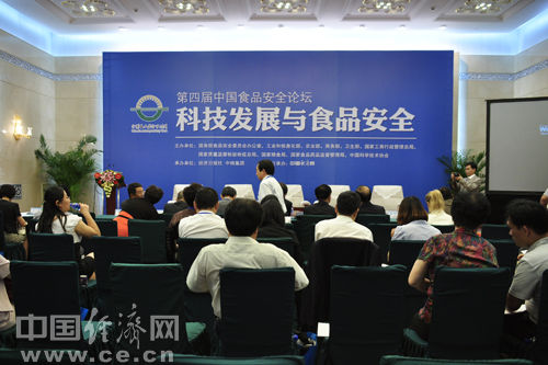 6月11日至17日被确定为今年的全国食品安全宣传周。宣传周主题为“共建诚信家园 同铸食品安全”。全国食品安全宣传周启动仪式由国务院食品安全委员会办公室、工业和信息化部、农业部、商务部、卫生部、国家工商总局、国家质检总局、国家粮食局、国家食品药品监管局、中国科协共同主办,经济日报社、中粮集团承办,中国经济网执行承办。图为第四届中国食品安全论坛 分论坛现场 裴小阁摄