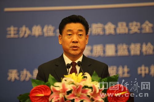 6月11日至17日被确定为今年的全国食品安全宣传周。宣传周主题为“共建诚信家园 同铸食品安全”。全国食品安全宣传周启动仪式由国务院食品安全委员会办公室、工业和信息化部、农业部、商务部、卫生部、国家工商总局、国家质检总局、国家粮食局、国家食品药品监管局、中国科协共同主办,经济日报社、中粮集团承办,中国经济网执行承办。图为国务院食品安全办副主任刘佩智 裴小阁摄
