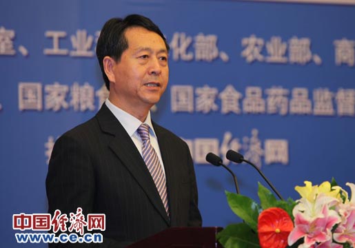 6月11日至17日被确定为今年的全国食品安全宣传周。作为2012年全国食品安全宣传周最重要活动之一,全国食品安全宣传周启动仪式暨第四届中国食品安全论坛6月11日在北京举行。论坛由国务院食品安全委员会办公室、工业和信息化部、农业部、商务部、卫生部、国家工商总局、国家质检总局、国家粮食局、国家食品药品监管局、中国科协共同主办,经济日报社、中粮集团承办,中国经济网执行承办。图为卫生部副部长陈啸宏。