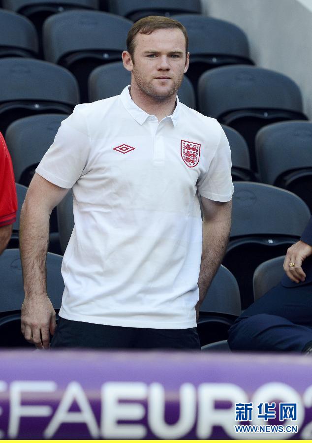 6月11日,英格兰队球员鲁尼在观众席观战。 当日,在乌克兰顿涅茨克顿巴斯竞技场进行的2012欧锦赛D组首轮比赛中,英格兰队以1比1战平法国队。 新华社/路透