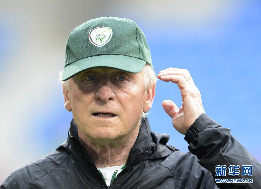 6月9日,爱尔兰队意大利籍主教练特拉帕托尼带领球队在波兰波兹南的市政体育场进行赛前训练。6月10日,2012欧锦赛C组首轮爱尔兰队将对阵克罗地亚队。比赛当天特拉帕托尼年龄为73岁零85天。他将成为欧锦赛历史上率队出战年龄最大的主教练。新华社记者武巍摄
