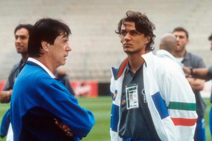 意大利主教练切萨雷-马尔蒂尼和儿子保罗-马尔蒂尼