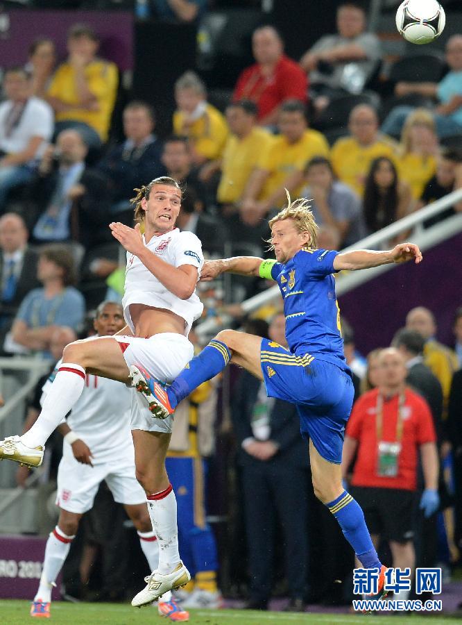 6月19日,乌克兰队球员季莫申科(右)在比赛中与英格兰队球员卡罗尔争顶。当日,在乌克兰顿涅茨克顿巴斯竞技场进行的2012欧锦赛D组第三轮比赛中,乌克兰队以0比1不敌英格兰队,未能小组出线。 新华社记者李勇摄