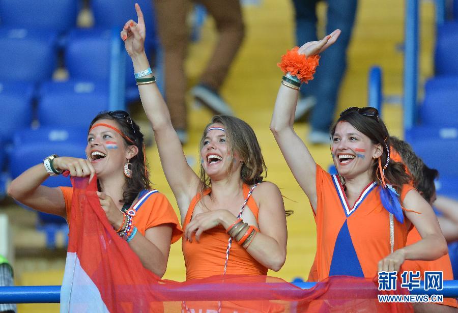 6月17日,荷兰球迷在比赛前造势。当日,在乌克兰哈尔科夫冶金球场进行的2012欧洲足球锦标赛B组第三轮比赛中,荷兰队对阵葡萄牙队。新华社记者李勇摄