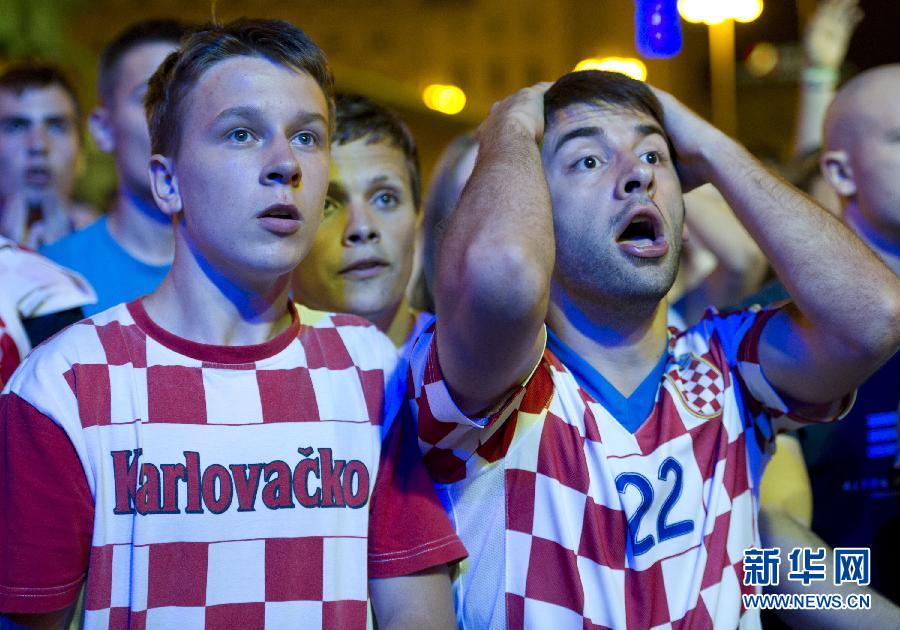 6月18日,在克罗地亚首都萨格勒布广场,克罗地亚球迷表情惊愕。当日,在2012欧洲足球锦标赛C组比赛中,克罗地亚队以0比1负于西班牙队,小组未能出线。 新华社发(米绍·利沙宁摄)