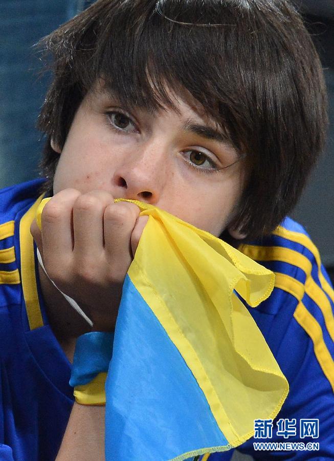 6月19日,乌克兰球迷在比赛后神情沮丧。当日,在乌克兰顿涅茨克顿巴斯竞技场进行的2012欧锦赛D组第三轮比赛中,乌克兰队以0比1不敌英格兰队,未能小组出线。 新华社记者李勇摄