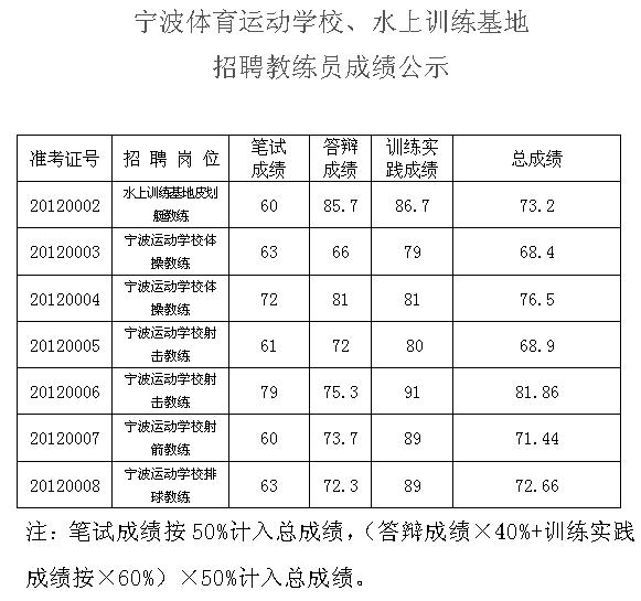 宁波体育运动学校和水上训练基地招聘教练员成绩公示