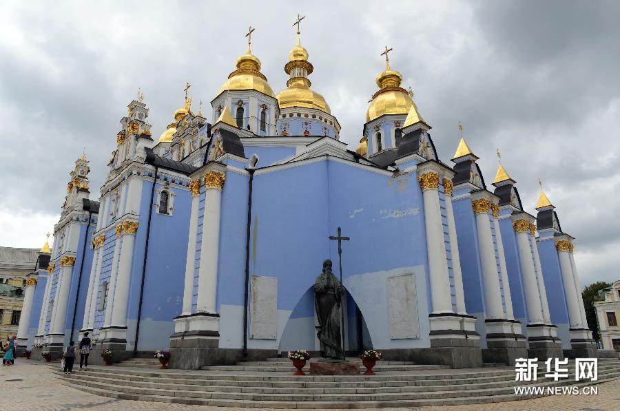 基辅基辅位于乌克兰中北部,第聂伯河中游,为乌克兰首都,全国的经济、文化中心。基辅已有1500多年历史,古老的乌克兰文化就在这里形成。基辅的圣索菲亚大教堂和彼切尔洞窟修道院皆被联合国教科文组织列为世界遗产,而现代重要地标之一是位于第聂伯河右岸卫国战争博物馆前的祖国之母巨型雕像。2012年欧洲足球锦标赛期间,D组的三场小组赛、一场四分之一决赛以及最后的决赛都在基辅举行。图为基辅的圣迈克尔金顶教堂(6月15日摄)。 新华社记者马宁摄