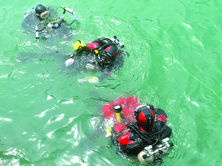 图3:考古潜水员跳入小白礁Ⅰ号沉船海域。(周建平 摄)