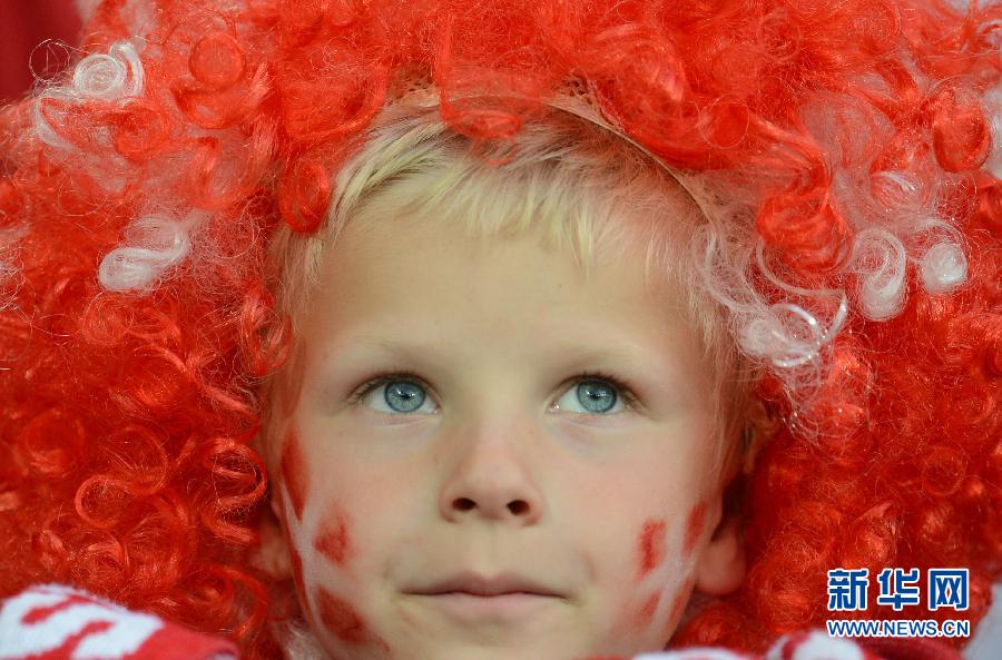6月17日,丹麦队小球迷在等待比赛开始。当日,在乌克兰利沃夫进行的2012欧洲足球锦标赛B组最后一轮比赛中,德国队对阵丹麦队。新华社记者李俊东摄