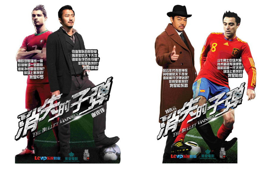 欧洲杯大战正酣,黑色侦探大片《消失的子弹》主创也跨界助阵。日前《消失的子弹》出炉了一系列“影星”VS“球星”的欧洲杯“纸片人”,谢霆锋、刘青云纷纷披挂上阵,与C罗、哈维上演惊天动地的“武林对决”,谢霆锋更是对足球王子C罗豪迈隔空放话:“6月球场上看你的,8月影院里看我的!”