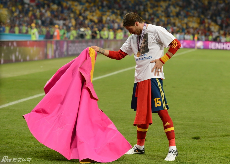 拉莫斯扮作斗牛士庆祝胜利