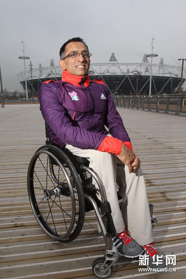 11月22日,一名工作人员在2012年伦敦奥运会主体育场前展示官方制服。当日,英国伦敦奥组委公布了2012年奥运会和残奥会官方志愿者以及技术官员制服。新华社发(伦敦奥组委供图)