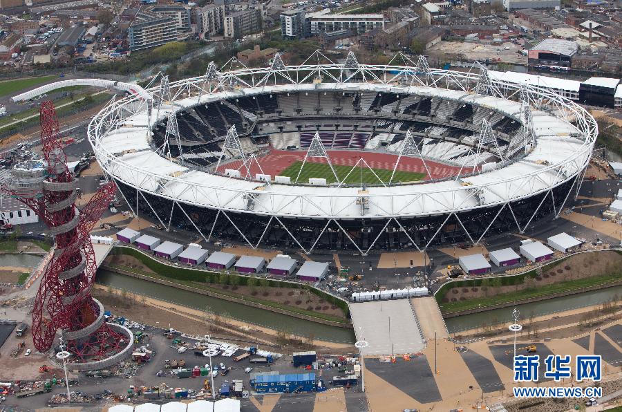 历史上,奥运会曾两次来到英国首都伦敦,都获得救赎并实现历史性跨越。1908年,罗马因为火山喷发放弃举办1908年奥运会,伦敦在关键时刻接手,仅用两年时间准备,就成功举办了奥运会;1948年,二战创伤仍未愈合,世界各地冲突不断,伦敦在危难时刻拯救了奥林匹克,举办了一届节俭但隆重的盛会,那是二战后第一个世界性的盛会。2012年7月,伦敦将第三次举办奥运会。伦敦是迄今为止举办夏季奥运会次数最多的城市。这是2012年4月16日航拍的伦敦奥林匹克体育场(右)以及体育场外部的光环桅杆建筑(左)。 新华社发
