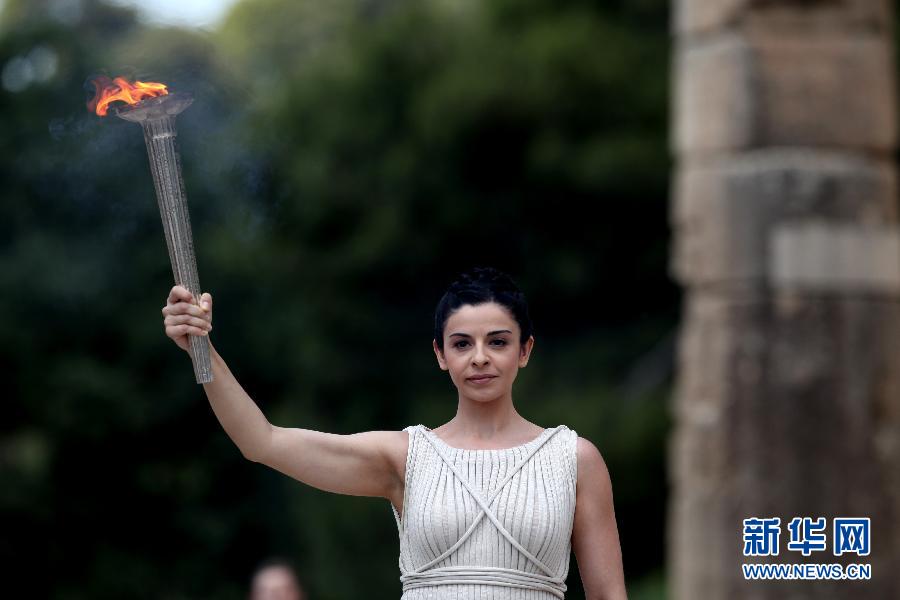 历史上,奥运会曾两次来到英国首都伦敦,都获得救赎并实现历史性跨越。1908年,罗马因为火山喷发放弃举办1908年奥运会,伦敦在关键时刻接手,仅用两年时间准备,就成功举办了奥运会;1948年,二战创伤仍未愈合,世界各地冲突不断,伦敦在危难时刻拯救了奥林匹克,举办了一届节俭但隆重的盛会,那是二战后第一个世界性的盛会。2012年7月,伦敦将第三次举办奥运会。伦敦是迄今为止举办夏季奥运会次数最多的城市。这是2012年5月10日,扮演最高女祭司的希腊女演员伊诺·梅尼佳奇在点火仪式上手持点燃的火炬。当日,伦敦奥运会圣火在希腊古奥林匹亚运动场正式点燃。新华社发
