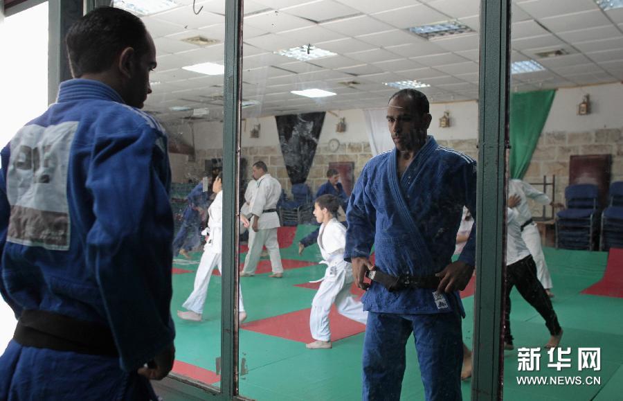 6月20日,鲁迈拉在体育馆内训练。巴勒斯坦柔道选手马希尔·阿布·鲁迈拉将参加2012年伦敦奥运会柔道项目男子73公斤级比赛。届时,他将成为历史上首位通过奥运积分而不是主办方邀请得以在奥运赛场征战的巴基斯坦运动员。新华社/路透