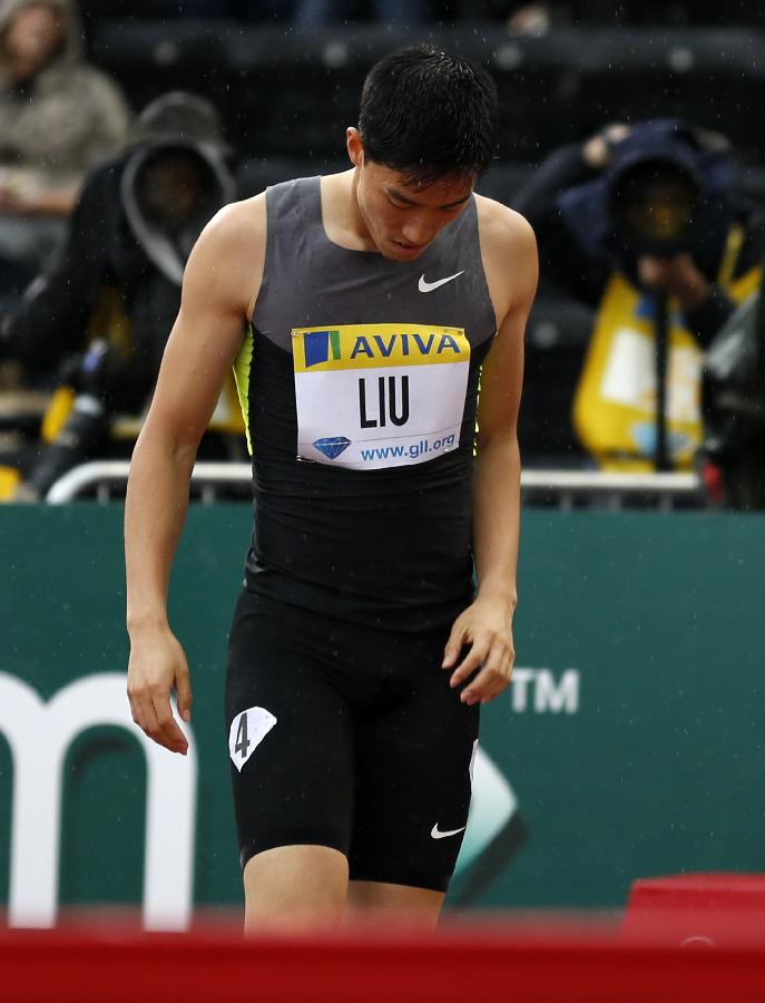 7月13日,中国选手刘翔在预赛后。当日,在英国伦敦水晶宫体育中心举行的国际田联钻石联赛伦敦站110米栏预赛中,刘翔以13秒27晋级决赛。 刘翔的教练孙海平说,刘翔在预赛结束后,肋部略感不适,为慎重起见,决定退出决赛。不过,他的伤情不重。 新华社记者王丽莉摄