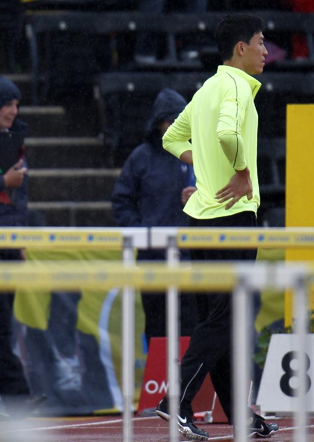 7月13日,中国选手刘翔在预赛前。当日,在英国伦敦水晶宫体育中心举行的国际田联钻石联赛伦敦站110米栏预赛中,刘翔以13秒27晋级决赛。 刘翔的教练孙海平说,刘翔在预赛结束后,肋部略感不适,为慎重起见,决定退出决赛。不过,他的伤情不重。 新华社记者王丽莉摄