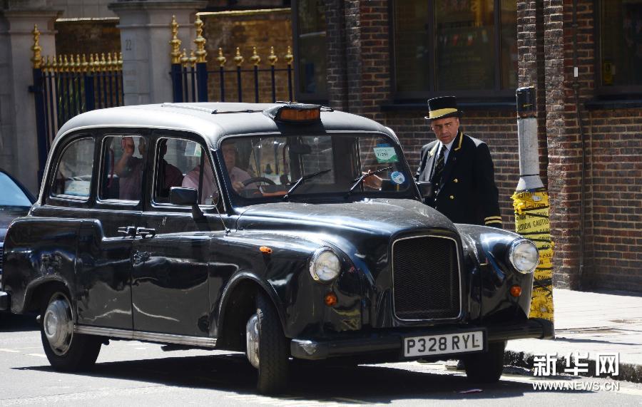 7月22日,丽兹酒店的服务生在引导一辆在酒店门口接客的出租车。丽兹酒店是伦敦著名的奢华酒店,酒店位于格林公园和白金汉宫附近,当日该酒店价格最低的单人间价格为590多英镑。 新华社记者李尕摄