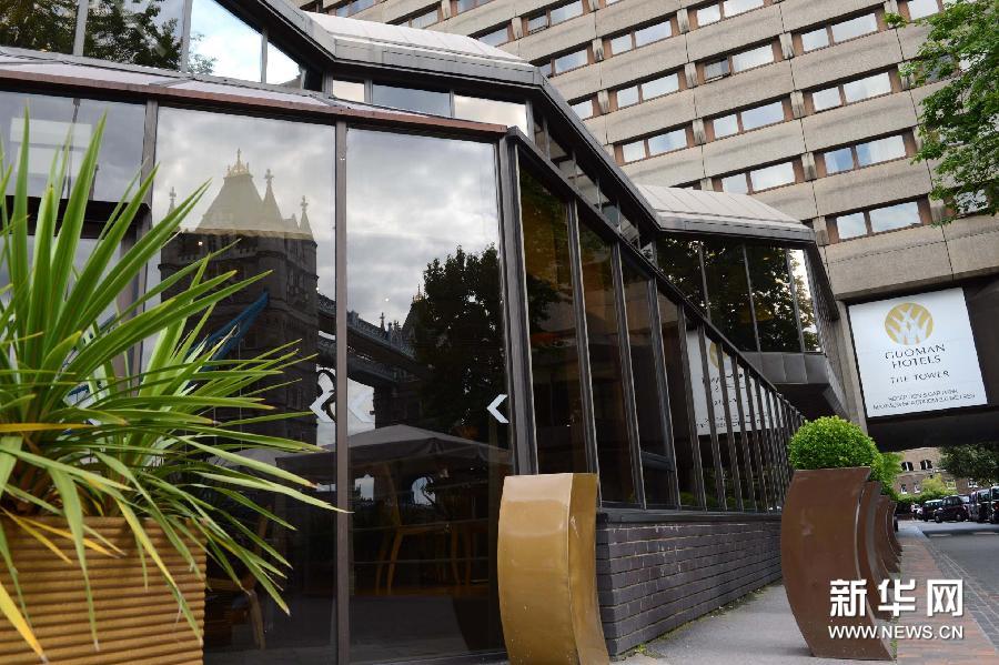 7月21日,伦敦塔桥映在国曼酒店的玻璃上。伦敦国曼酒店坐落在伦敦塔桥旁,对于来伦敦旅游的人来说是个不错的选择,目前房价在150英镑左右。新华社记者郭勇摄