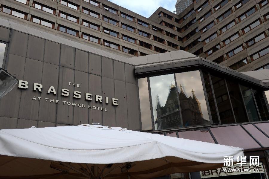 7月21日,伦敦塔桥映在国曼酒店的玻璃上。伦敦国曼酒店坐落在伦敦塔桥旁,对于来伦敦旅游的人来说是个不错的选择,目前房价在150英镑左右。新华社记者郭勇摄