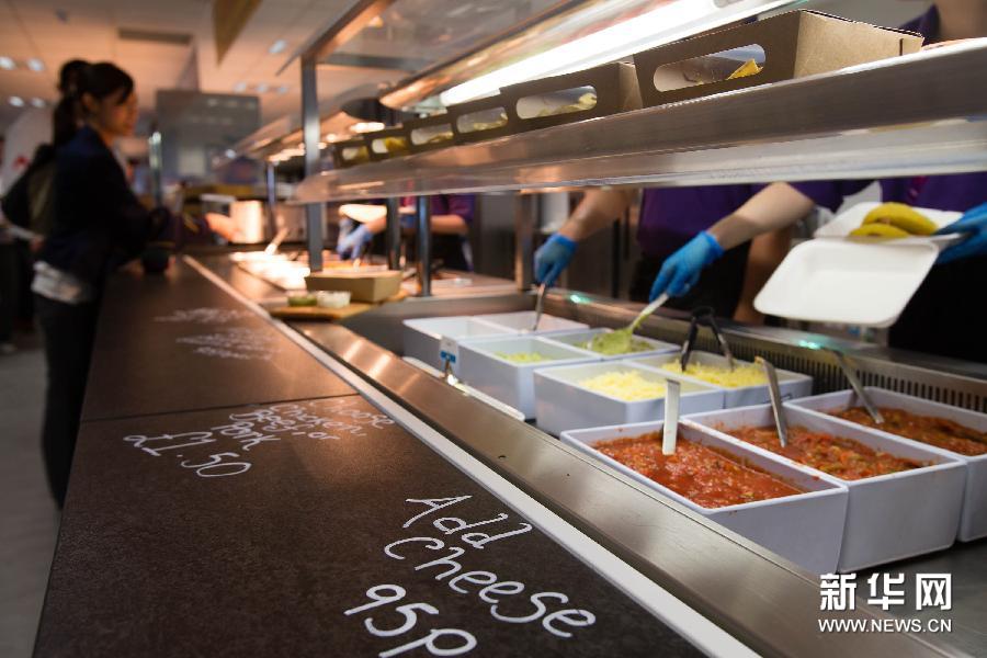 7月21日,媒体工作人员在伦敦奥林匹克公园媒体餐厅内选择午餐。奥林匹克公园媒体餐厅分为世界美食、英国美食、亚洲风味、地中海风味等几部分,价格基本与园外持平。新华社记者金立旺摄