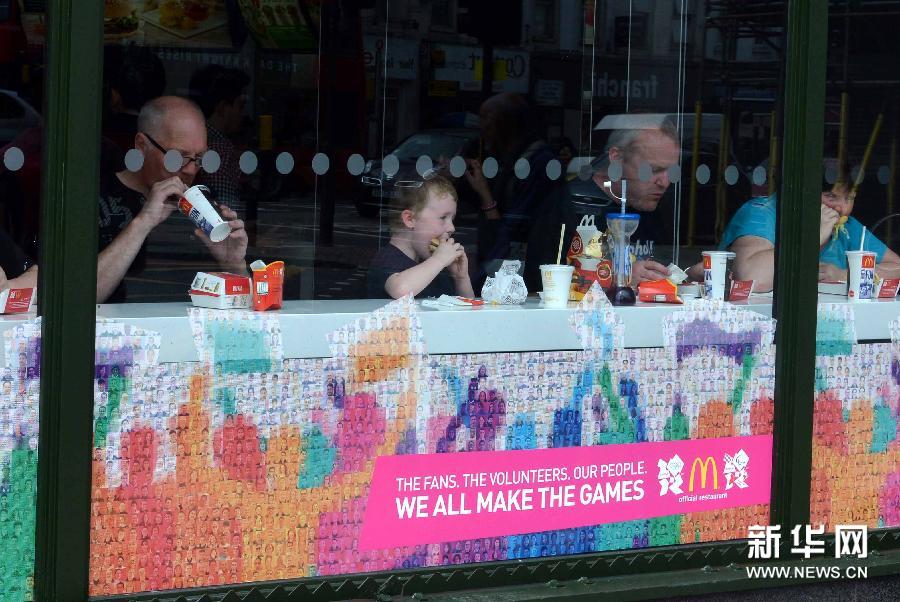 7月21日,人们在伦敦的一家快餐店就餐。伦敦街头许多快餐店物美价廉,一顿饭往往只需要几英镑。 新华社记者公磊摄