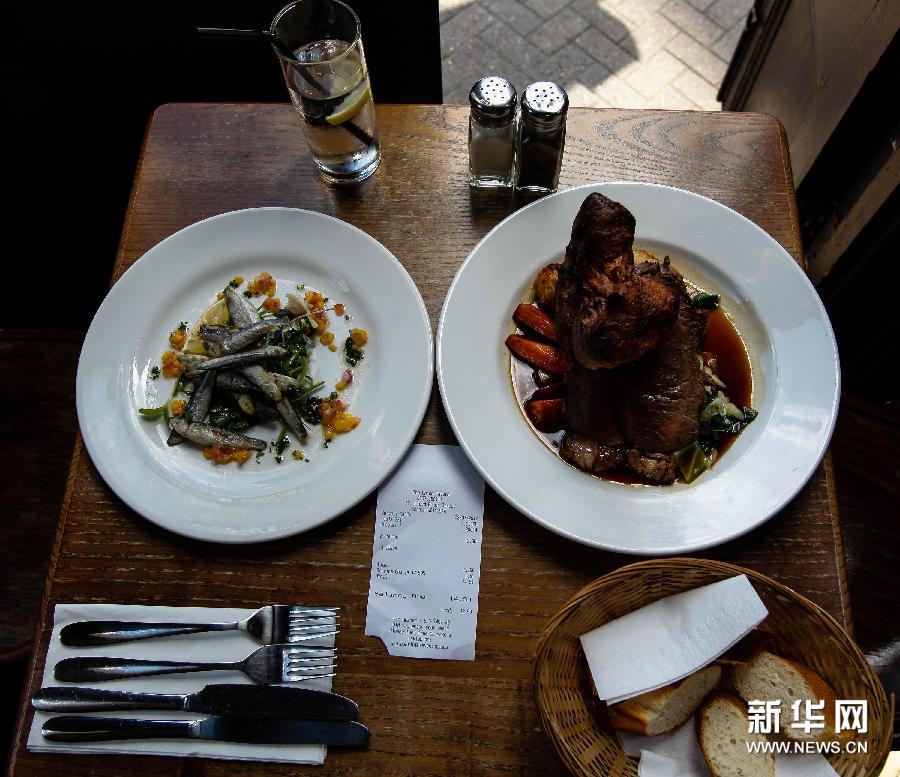 这是7月22日拍摄的伦敦一家餐厅星期日套餐及其价格。含两道菜的套餐售12.9英镑,加上服务费1.61英镑后合计14.51英镑。据该餐厅经理介绍,今年的营业额与去年同期相比下降了20%左右,主要原因是当地经济不景气。不过随着奥运会的临近,生意有所改善。新华社记者金立旺摄